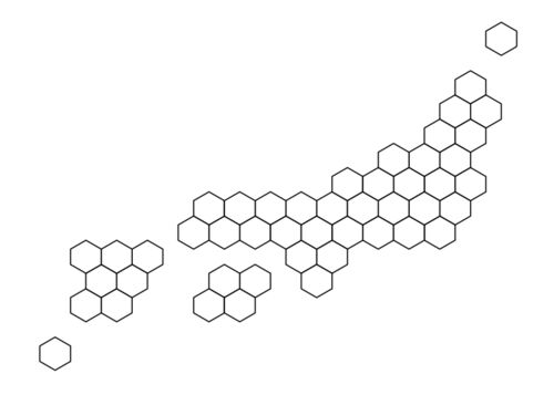 これはなんでしょう。 そう、日本ですね。正しくは日本列島を簡略化し、各都道府県を六角形 (hexagons) で表現した図です。日本列島がおさまってしまうネタ画像が出回るほどに面積の大きな北海道が他の都道府県と同じサイズで小さくなってしまっていたり、現…