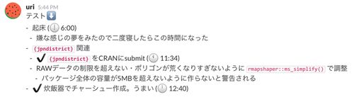 作ったというほど大したものではないが、RStudioアドインの普及のために書いておく。 へーしゃのエンジニアチームでは毎日やったことやぎょーむ進捗を「日報」としてSlackにあげることになっている。そこで自分は1日の終わりに今日1日の作業を思い出すのは辛…